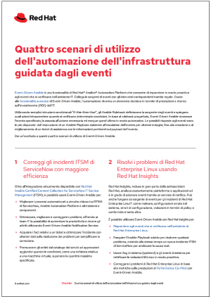 Usa Event-Driven Ansible su Red Hat Ansible Automation Platform per rispondere in modo proattivo agli eventi relativi all'ambiente IT. Leggi la checklist per saperne di più.