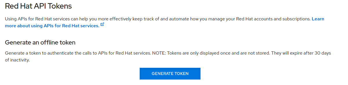 To start, we must acquire the token for the authentication with the Red Hat services API.