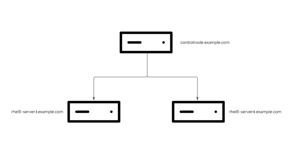 今回の環境には、controlnode という名前のコントロールノード (RHEL 8.5 を実行) と、rhel8-server3 と rhel8-server4 の管理対象ノード (いずれも RHEL 8.5 を実行) があります。