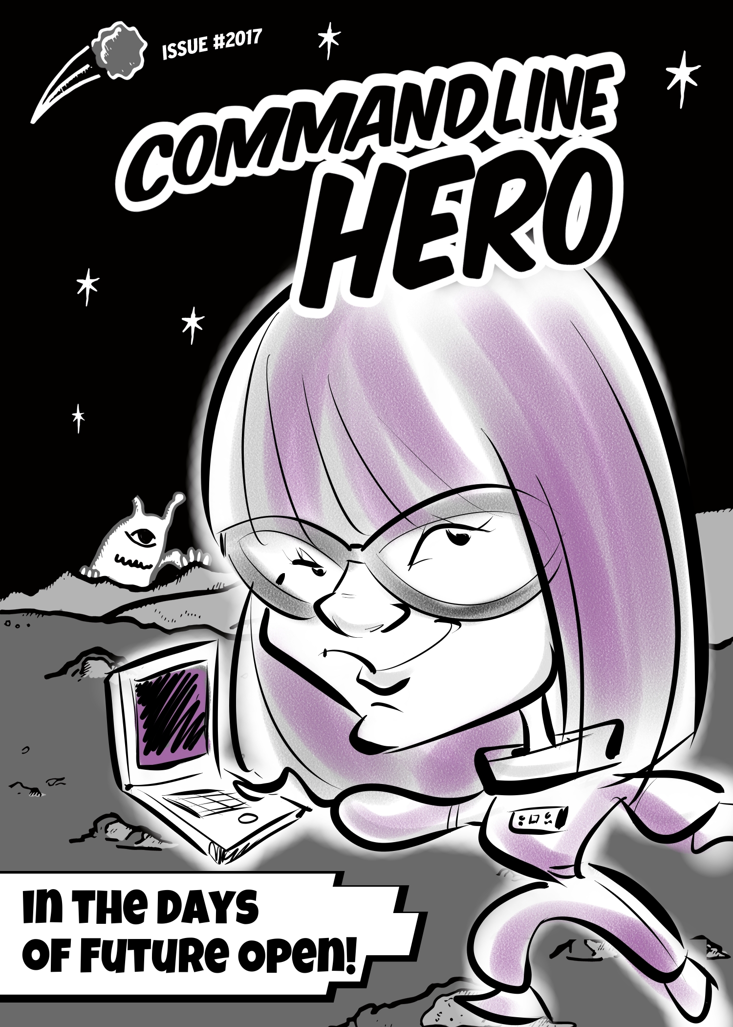 In the latter half of 2017 we took our show on the road. After that fateful encounter in Austin—where we learned that some developers just want the operating system to “get out of the way”—we knew there was an ocean of knowledge and experiences to learn from. From Cape Cod (Flock 2017) to Prague (Open Source Summit Europe 2017) to Las Vegas (AWS re:Invent 2017) to San Francisco (Red Hat Summit 2018), we spoke with literally hundreds of passionate problem solvers. We also had a blast discovering people’s various superpowers and illustrating them as the (command line) heroes / heroines that they are. Some folks you may recognize: