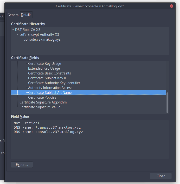 [Thu 15 Mar 15:18:19 EET 2018] Multi domain='DNS:console.v37.maklog.xyz,DNS:*.apps.v37.maklog.xyz'