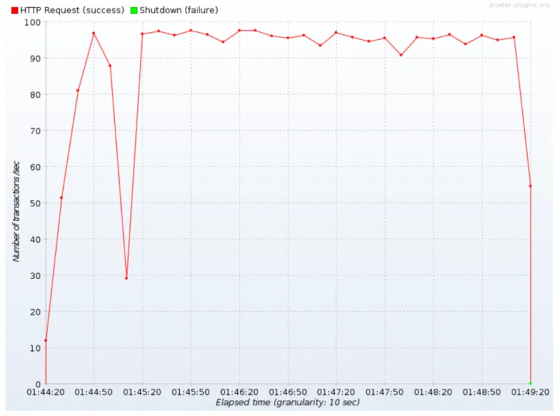 Once the resources have been created within the OpenShift cluster, support is also available to automatically generate traffic against running applications that expose routes to verify they can be accessed successfully along with measuring application performance. This process is accomplished by executing the cluster-loader tool a second time by specifying the traffic generation option. The generator tool makes use of JMeter behind the scenes to measure performance metrics, such as success rate, hits/second, and amount of data transferred.