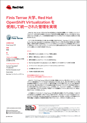 チリの教育機関である Finis Terrae 大学は、運用を VMWare から新しい仮想化ツールへと移行しなければならないという課題に直面していました。同大学は、Red Hat® OpenShift® Virtualization でワークロードを管理することでリソース管理を最適化し、インフラストラクチャを変更することなく DevOps 運用を促進することができました。