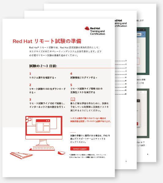 Red Hatリモート試験の準備の公式ドキュメント(英語)→