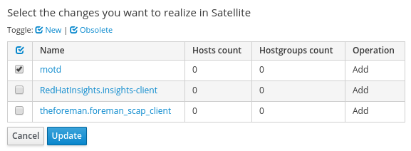 Satellite will detect the motd_array variable that can be imported from the role. Check the box for this variable, and click Update: