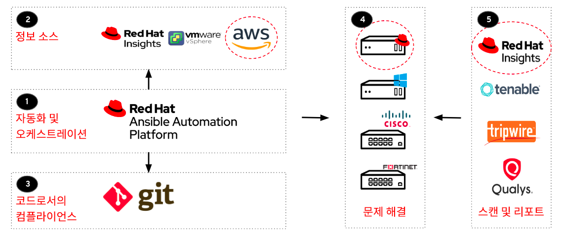 지금까지 Red Hat Ansible Automation Platform이 컴플라이언스를 지원하는 방법을 살펴보았습니다. 그렇다면 이 플랫폼은 어떻게 OpenSCAP과 자동으로 연동할까요?