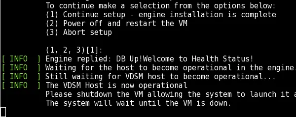 hosted-engine --deployand select option 2, "Power off and restart the VM."