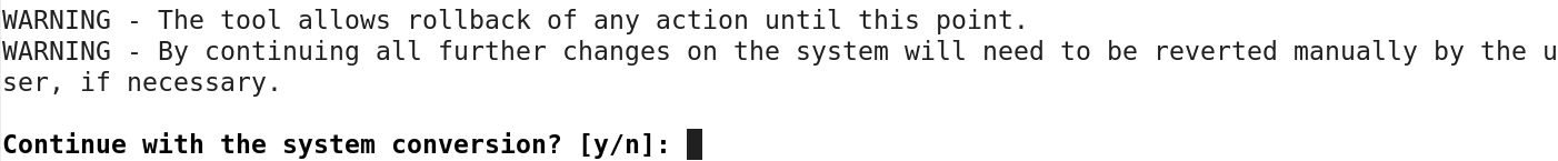 A final confirmation to continue. After this point the tool will make changes that would need to be reverted manually.
