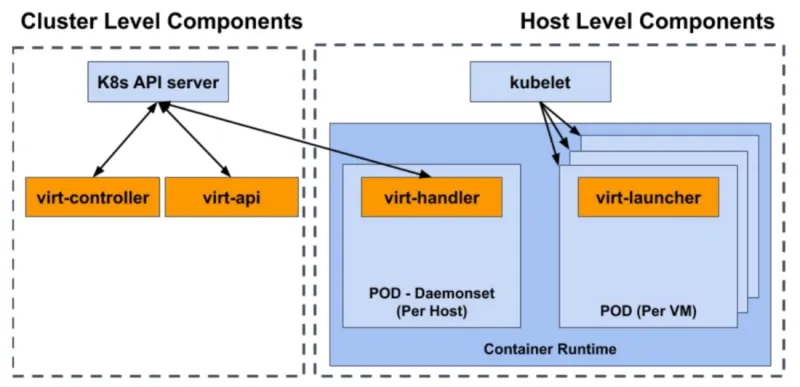 KubeVirt extends Kubernetes by adding resource types to VMs and sets of VMs through the Kubernetes Custom Resource Definitions (CRD) API. KubeVirt VMs run in regular Kubernetes pods, where they have standard pod storage and network access, and can be managed using standard Kubernetes tools such as kubectl.