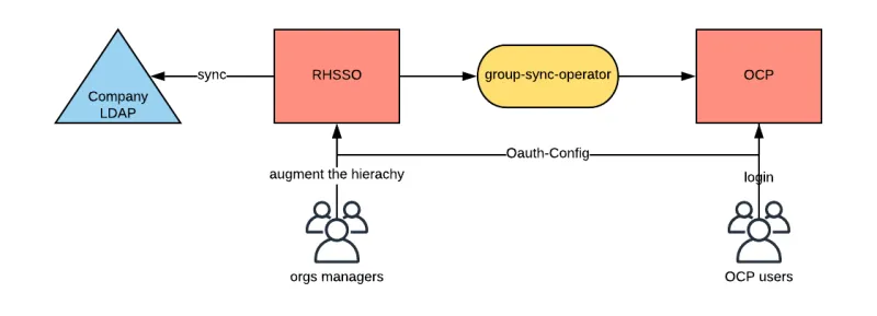 So, there is a gap normally between the representation of a company organization that we can find in a company’s directory service, and the need in OpenShift. The diagram below attempts to capture the concept: