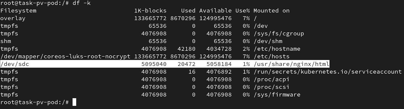 9. Navigate to the file specified by the PVC’s mountPath.