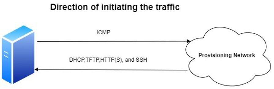 If there are firewalls between the PXE servers and Provisioning Networks, incoming TFTP and HTTP traffic from the Provisioning Networks towards the PXE servers must be permitted. ICMP traffic from the PXE servers towards the Provisioning Networks (new servers must be pingable from the DHCP server) must also be permitted.