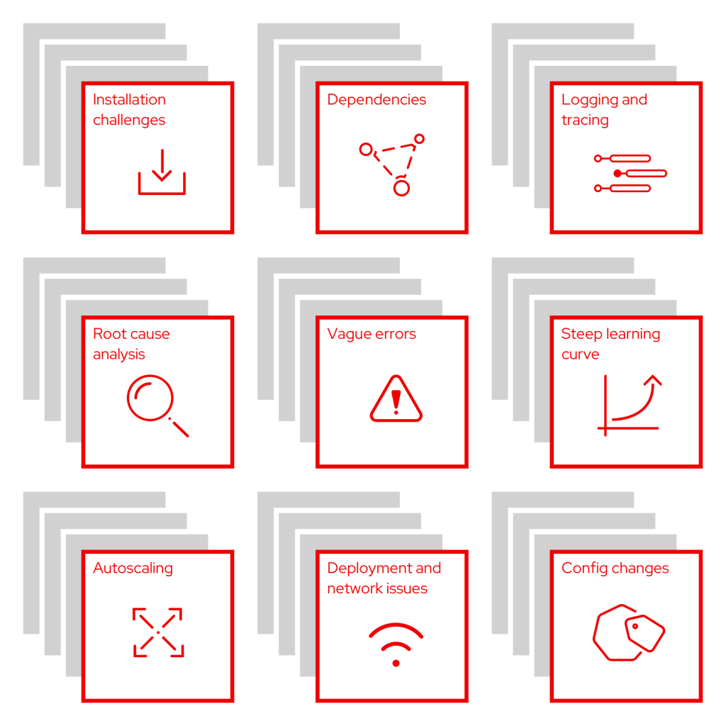 - Deployment and network issues: “I have issues where a service will not start due to a deployment, but it’s unclear why. Network policies, firewalls, and certificate security issues often crop up for my team.”