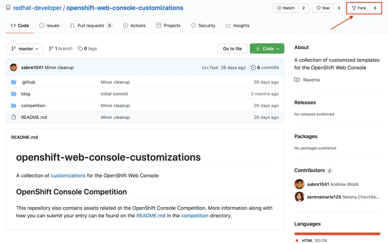 $ git clone https://github.com/<forked_repository>/openshift-web-console-customizations.git