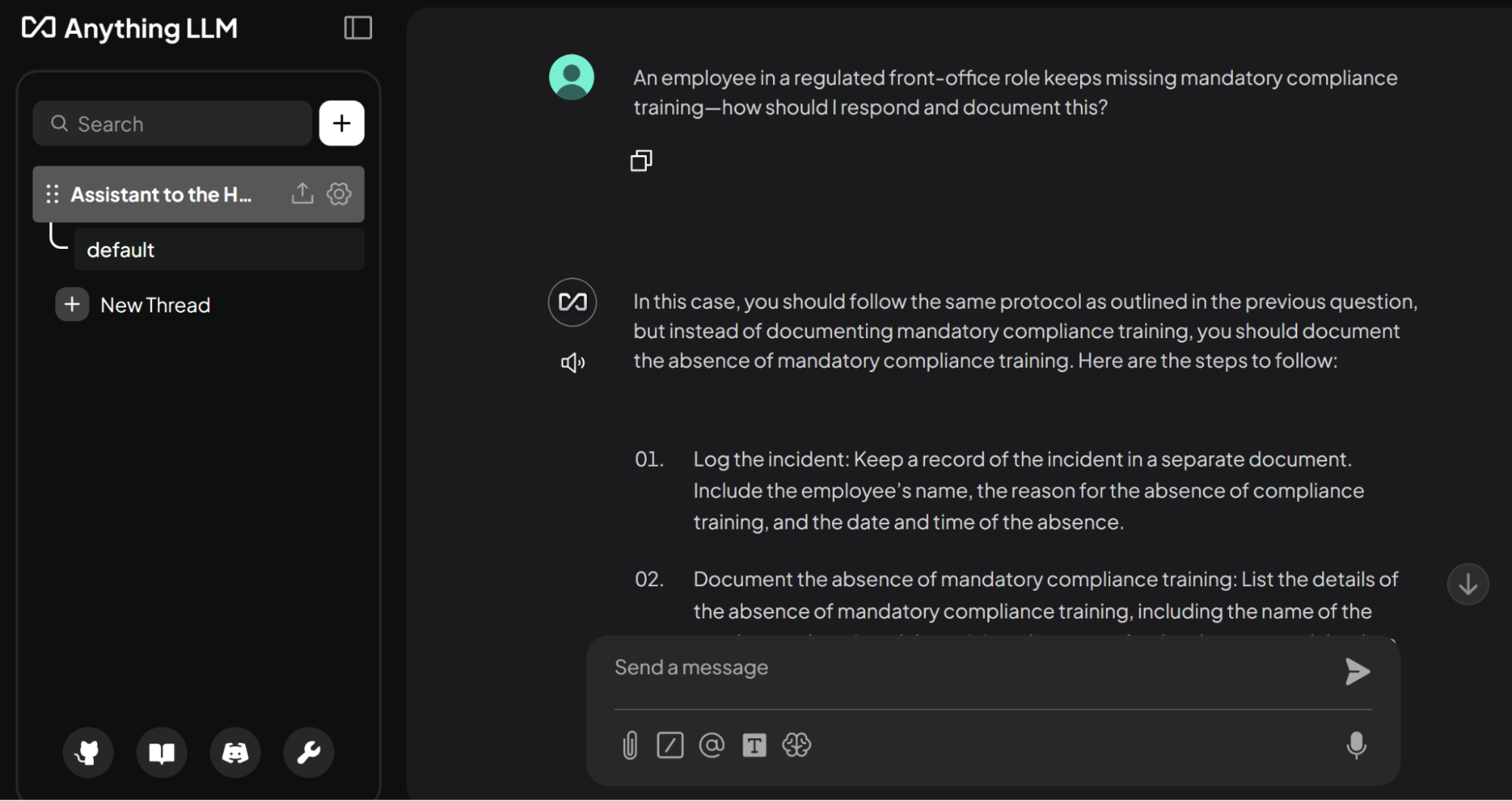 helm install llm-cpu-serving helm/ --namespace ${PROJECT} After only a few commands, you'll be able to navigate to the “hr-assistant” project in the OpenShift AI dashboard and fire up your very own assistant!
