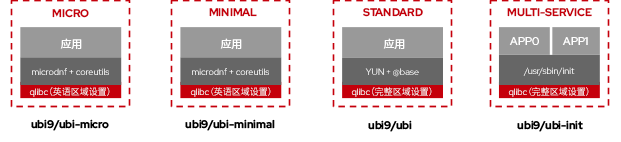 - 一套四个基础镜像(ubi-micro、ubi-minimal、ubi standard、ubi-init)