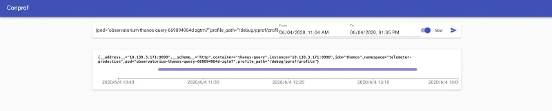 Conprof’s query interface showing many samples over time being collected.