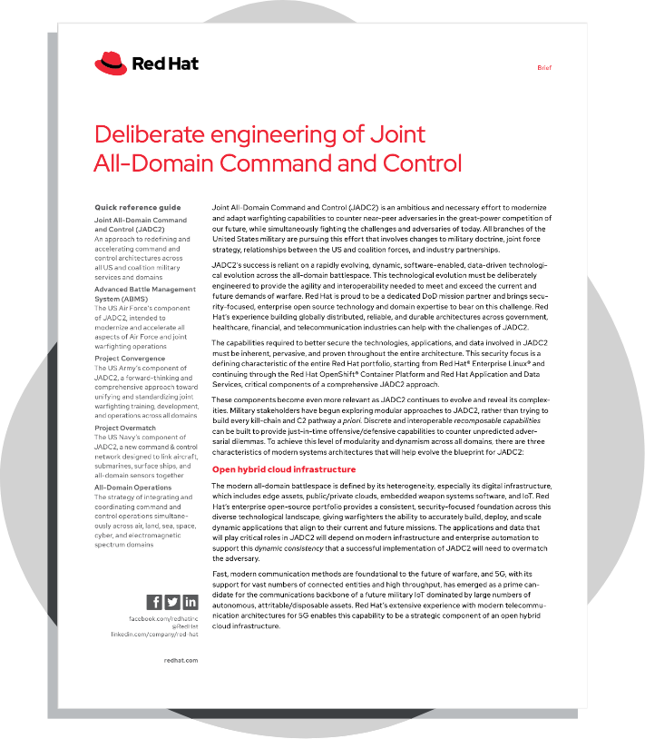对于至关重要的军事任务,敏捷就是一切。了解红帽开放而灵活的混合方法如何帮助美国国防部实现云、团队和流程的互联互通。